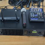 Variante avec table de mixage Wharfedale Pro Connect 802, un deuxième micro filaire et un support de table pour 9.-/jour en plus